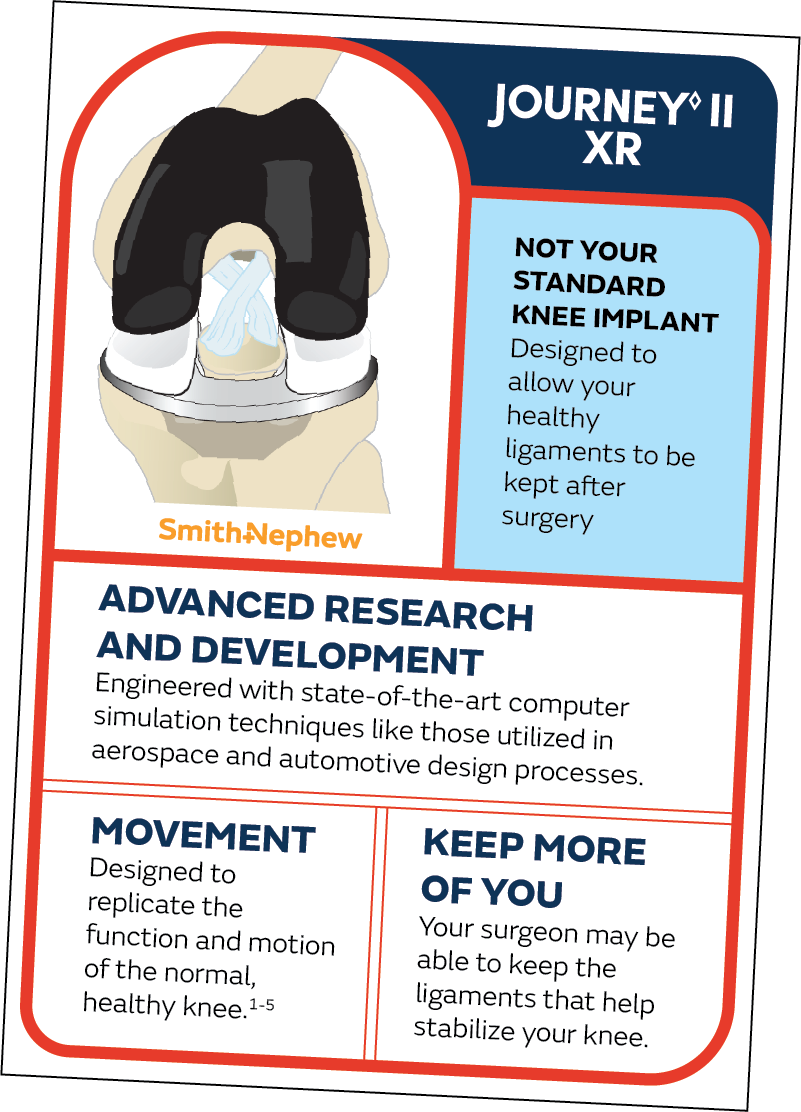 MORE NATURAL MOTIONYou want a knee that feels normal after knee replacement surgery. That’s why Smith+Nephew spent years developing the JOURNEY◊ II Total Knee System. Designed to offer a smoother recovery, improved function and higher patient satisfaction.