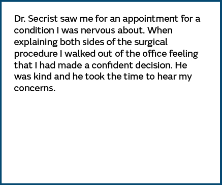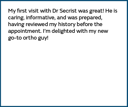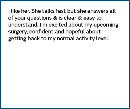 He works closely with a large team to ensure that all nonoperative treatment is attempted before considering surgery. If patients elect to move forward with surgery, he works closely with primary care providers to evaluate the whole patient – not just their orthopedic condition – and optimize their physical and mental health before surgery. During surgery, he employs a multimodal approach incorporating pharmacologic and non-pharmacologic approaches to pain management to help patients take as few opioids as possible and speed their road to recovery.